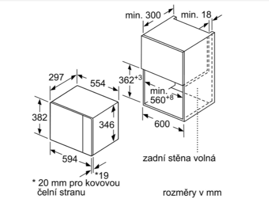 rozměry niky (v x š x h): 362 mm - 365 mm x 560 mm - 568 mm x 300 mm
