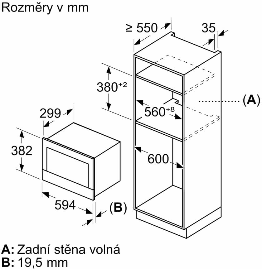 vestavný spotřebič do horní skříňky o šířce 60 cm s hloubkou min. 30 cm, pro vestavbu do vysoké skříňky o šířce 60 cm