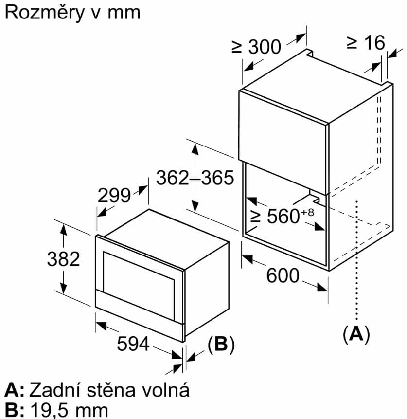 rozměry niky (V x Š x H): 362 mm - 382 mm x 560 mm - 568 mm x 300 mm